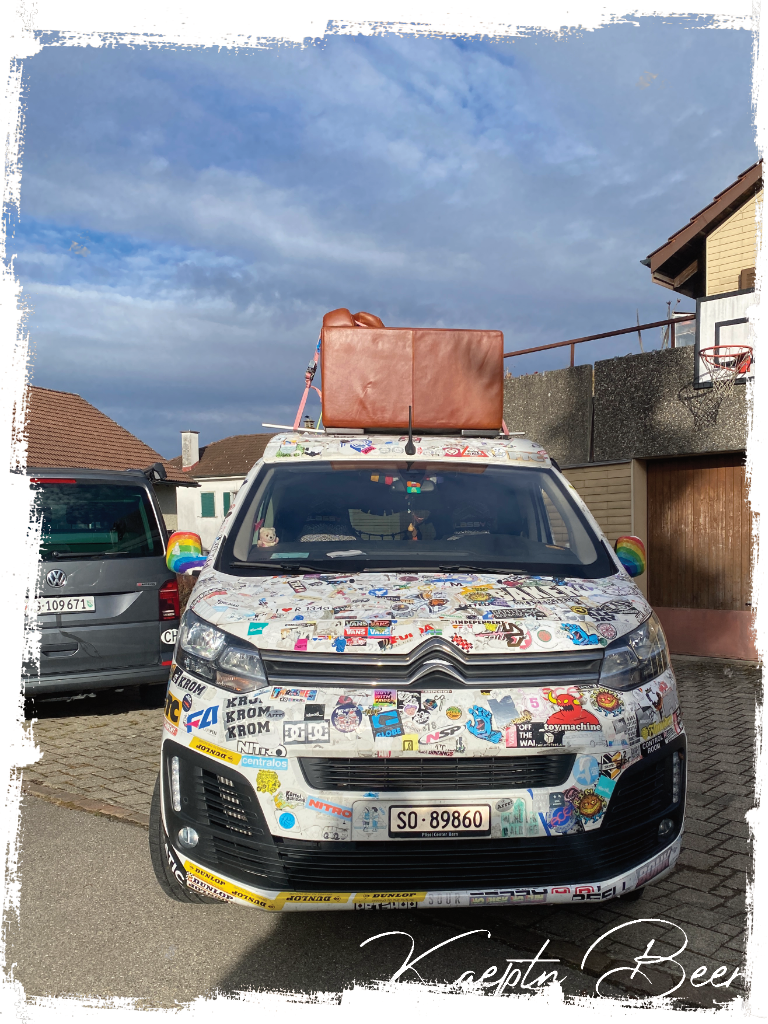 so, after the photo shooting, me thinking about having the sofa as a permanent installation on the roof and promises I wouldn’t take the “Autobahn”, I drove on the “Autobahn” on the truck lane, easy cruising’ 80km/h, elbow symbolically out-the-window (another one of those who are better in the imagination and just a fuck-up too noisy in reality) and brought that baby home safely.