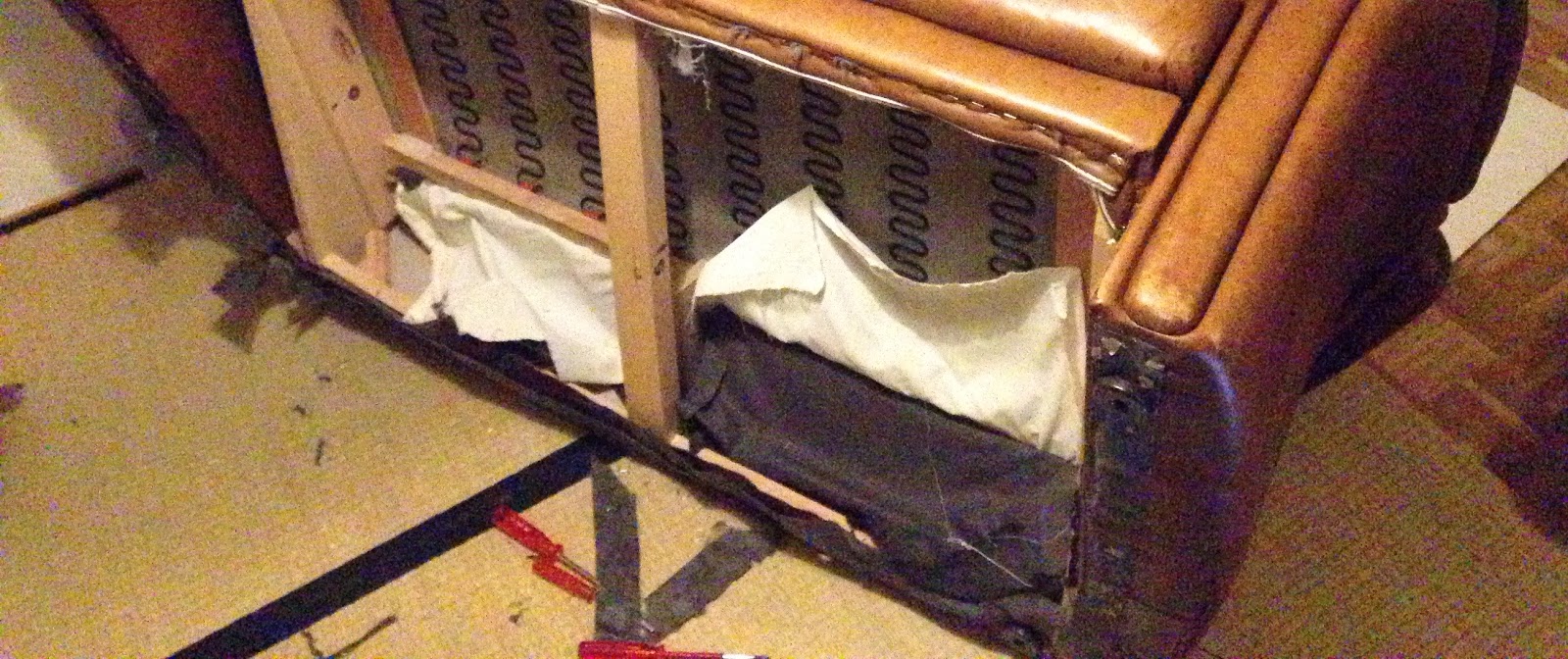 | hier das gratissofa aus dem brocki, ein paar wochen später, kurz vor dem ausgeschlachtet werden